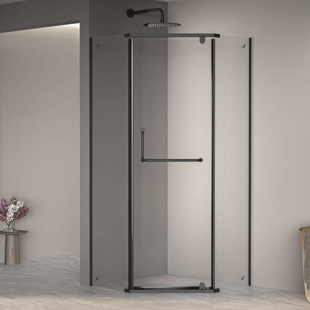 Цвет профиля душевого уголка - черный. Такое решение придает уголку элегантности и современности, отлично сочетается с любым интерьером ванной комнаты. Хромированный профиль отличается прочностью и устойчивостью к воздействию влаги и различных химических веществ.
