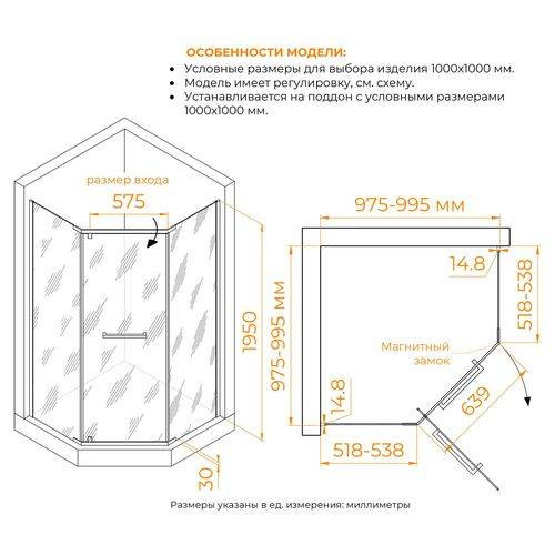 Душевой уголок 100*100 без поддона идеально подходит для помещений с ограниченным пространством, обеспечивая комфорт и функциональность. Модель душевого уголка 100*100 выполнена в форме трапеции, что придает ей современный дизайн и удобство использования. Душевой уголок трапеция отличается прочностью и устойчивостью, благодаря качественным материалам. Душевой уголок трапеция отлично впишется в любой интерьер, создавая уютную атмосферу.