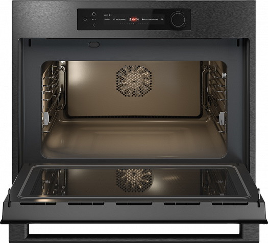 Устройство оснащено функцией гидролитической очистки Aqua Clean с микроволнами, которая значительно упрощает процесс уборки. Дверца выполнена по технологии Microwave CoolDoor, что обеспечивает безопасность при использовании. Также стоит отметить наличие телескопических направляющих на 1-м уровне и двухстороннего галогенного освещения.