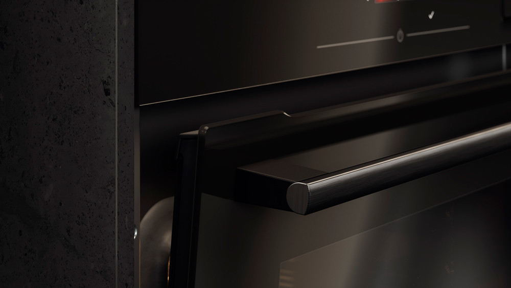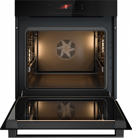 Фронт выполнен из черного стекла, что придает модели элегантный и современный вид. Объем составляет 71 литр, что позволяет готовить большое количество блюд одновременно. А благодаря функции Air Flow 360 воздух равномерно распределяется по всему объему, обеспечивая идеальные условия для приготовления.