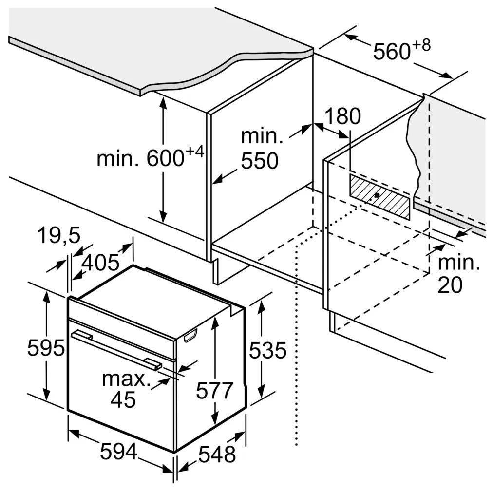 Основное Духовка: электрическая Тип: независимая Оформление: классическое Управление: сенсоры Объем: 71 л Максимальная температура: 300 °C Функции и возможности автоматическое отключение термостат гриль конвекция таймер термощуп Общее Очистка внутренней поверхности: пиролитическая Управление через Интернет: / Home Connect / Направляющие противней: телескопические на трех уровнях Открывание: сверху вниз Кол-во стекол дверцы: 2 Защита от детей: + Габариты (ВхШхГ): 59.5x59.5x54.8 см Размеры для встраивания (ВхШхГ): 600x560x550 мм