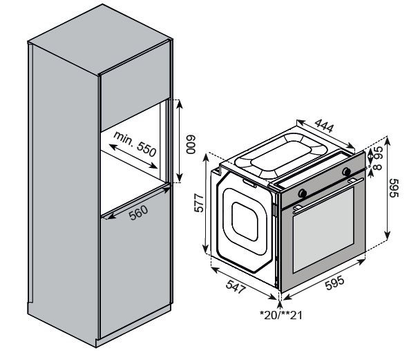 Размер ниши для встраивания (ВхШхГ), мм 600×560×550