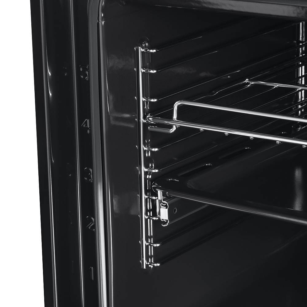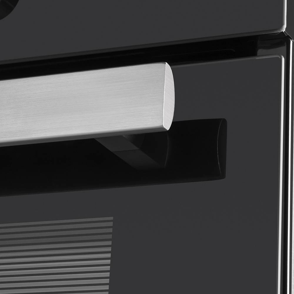 Переключатели серебристого цвета Push Pull (утапливаемые), ручка духовки из металла окрашена в серебристый цвет.