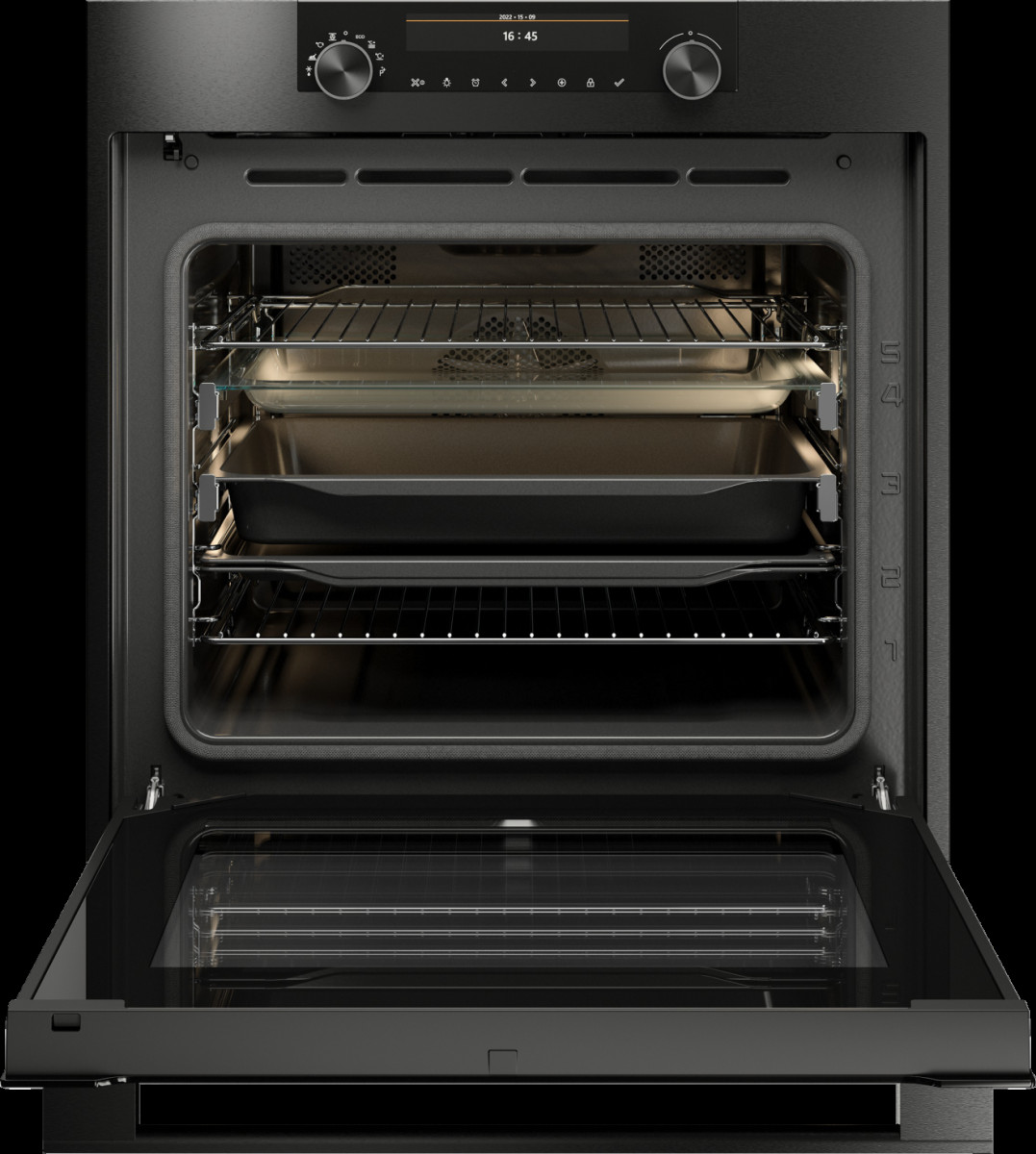 Горячий воздух остается внутри за счет плотно закрывающейся дверцы с тройным стеклом. Духовой шкаф Аско ОР8687B оборудован тангенциальной системой охлаждения. Такая система благодаря мощному вентилятору создает вокруг девайса воздушный барьер. Движущийся в нем воздух препятствует утечке тепла и позволяет защитить от перегрева как поверхность техники, так и кухонную мебель, в которую она установлена.