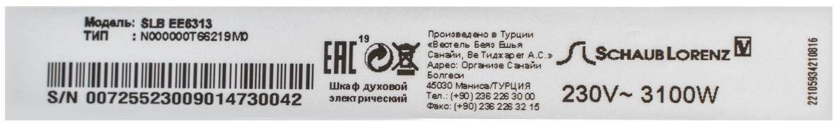 Духовой шкаф SCHAUB LORENZ SLB EE6313
