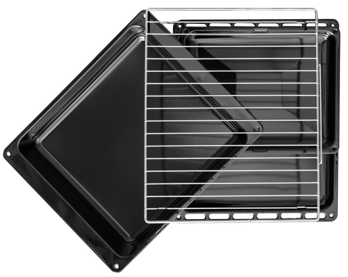 Комплектация: Хромированная решетка, 2 Универсальных противня с антипригарным покрытием Easy Clean, 1 глубокий (80 мм) противень с антипригарным покрытием Easy Clean