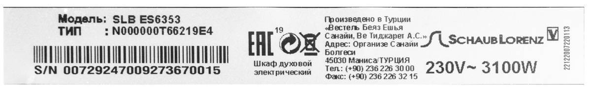 Духовой шкаф SCHAUB LORENZ SLB ES6353