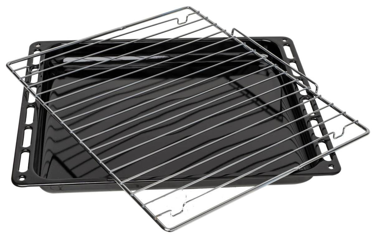 В комплекте: прямоугольный противень и хромированная решетка.