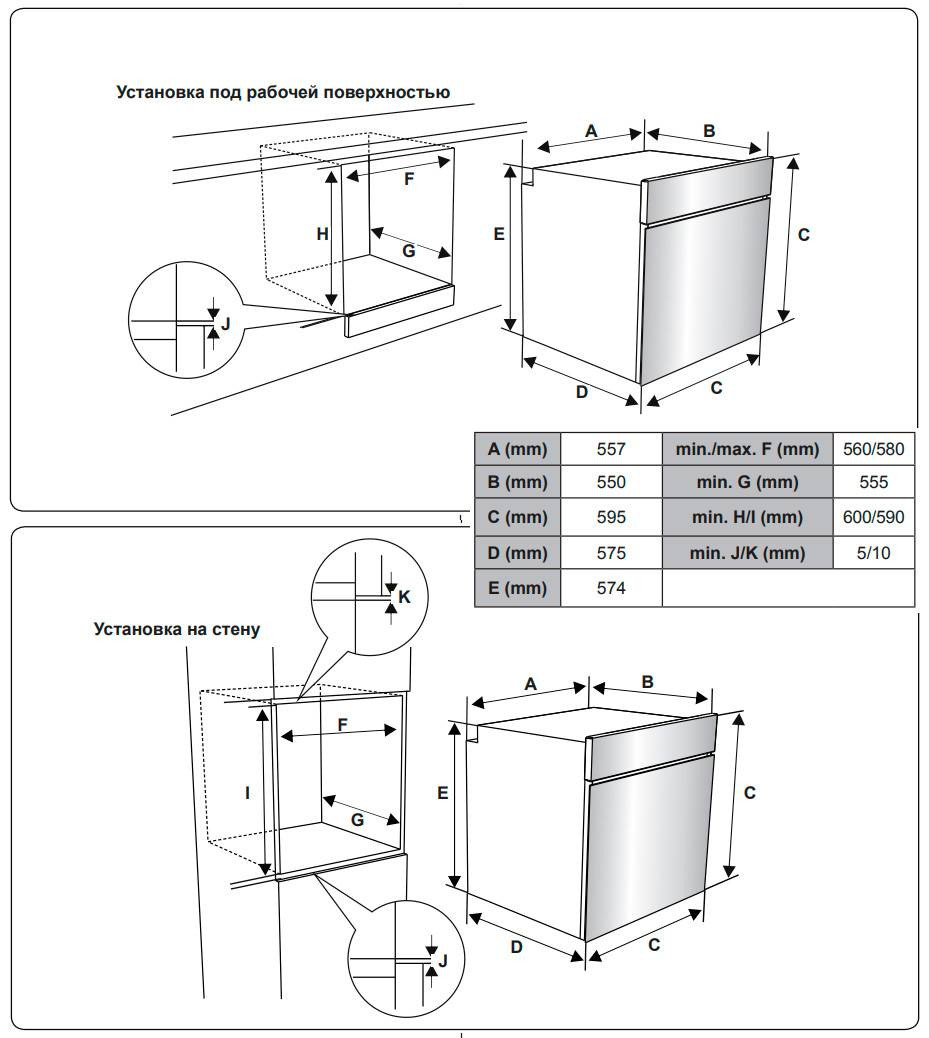 Размер ниши для встраивания в столешницу (ШхГхВ), мм: 600x560x550