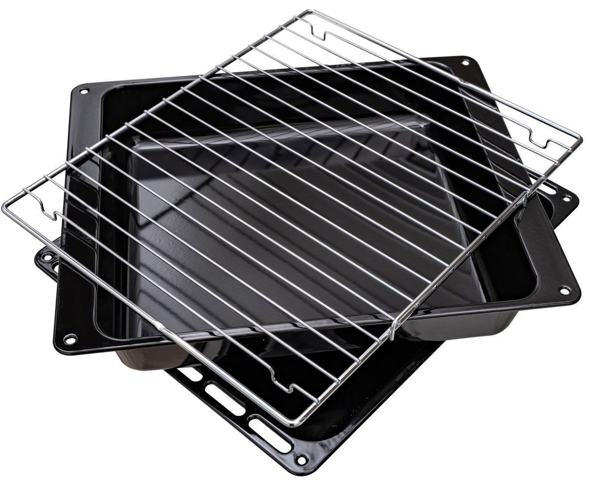 В комплекте: глубокий противень, прямоугольный противень и хромированная решетка.