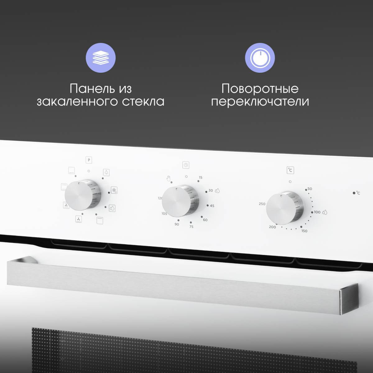 Объем камеры в 70 л с 5 уровнями установки противня на съемных металлических направляющих позволит приготовить блюда любых размеров: запечь курицу целиком или испечь пирог на большую семью, не потратив на это много времени благодаря быстрому нагреву.