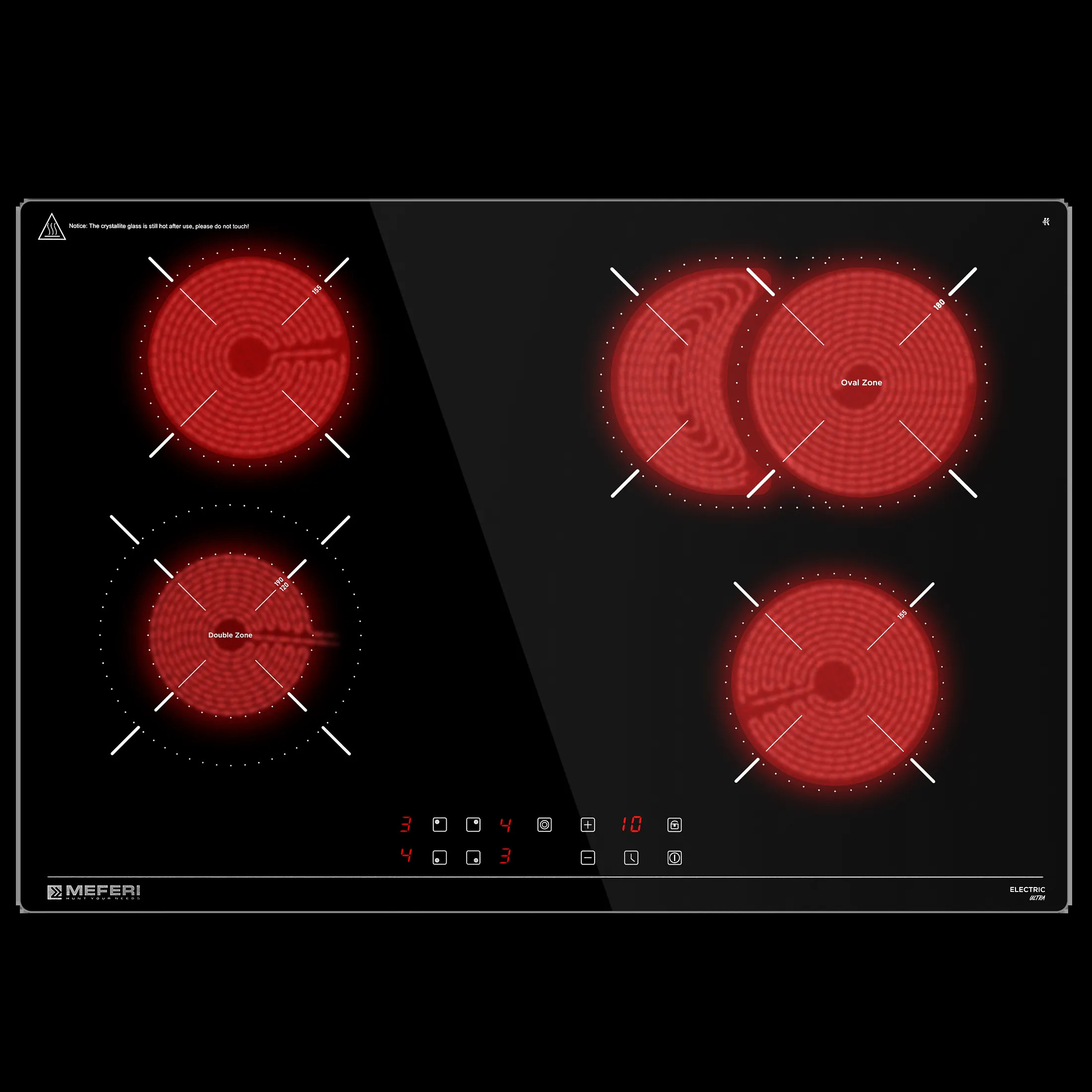 Индикатор Остаточного Тепла: Индикатор остаточного тепла позволяет вам видеть, какие конфорки все еще горячие после приготовления, что обеспечивает безопасность и экономию энергии.