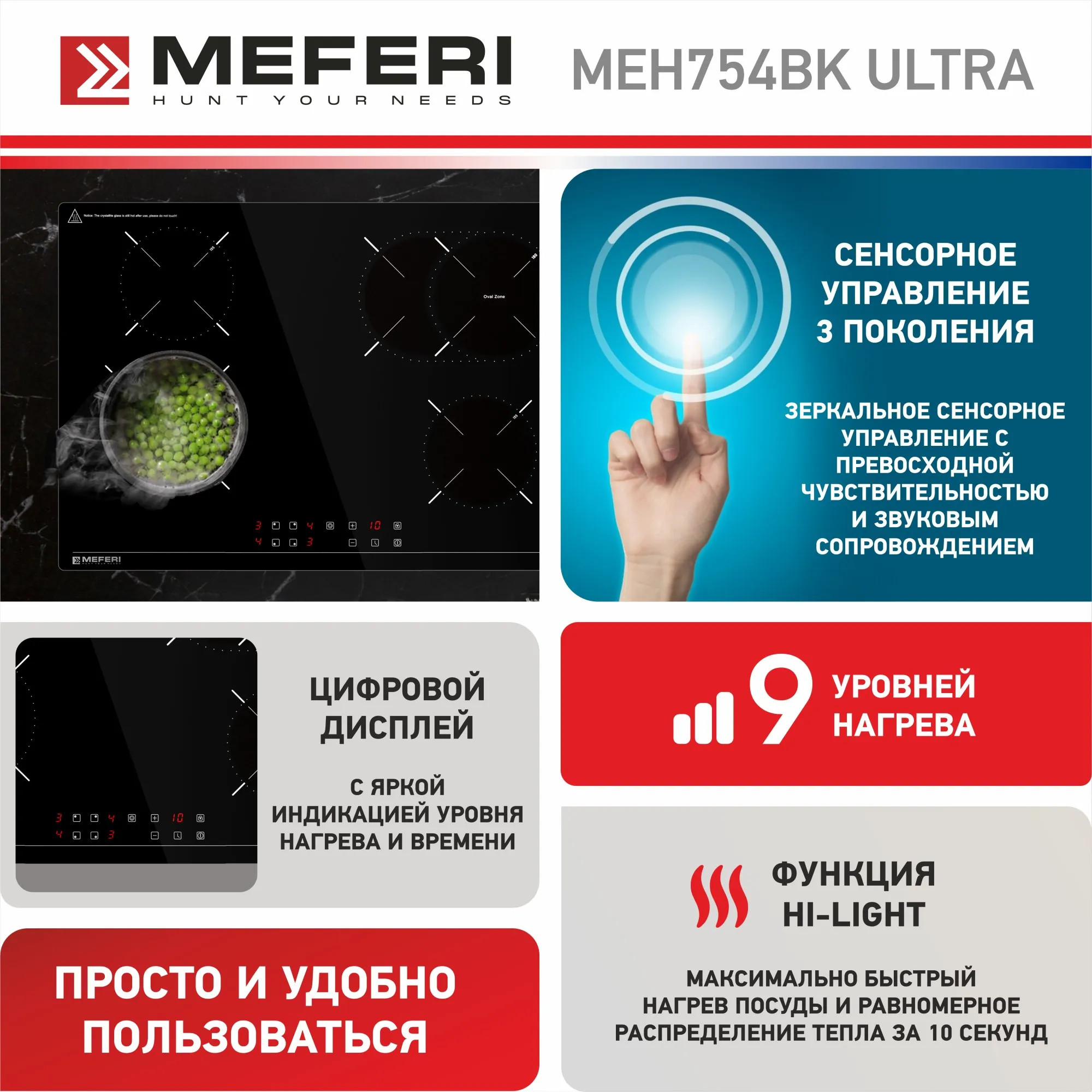 Meferi MEH754BK ULTRA - это надежная и функциональная варочная панель, которая поможет вам готовить на высшем уровне. Независимо от вашего опыта, вы оцените ее удобство и возможности при каждой готовке.