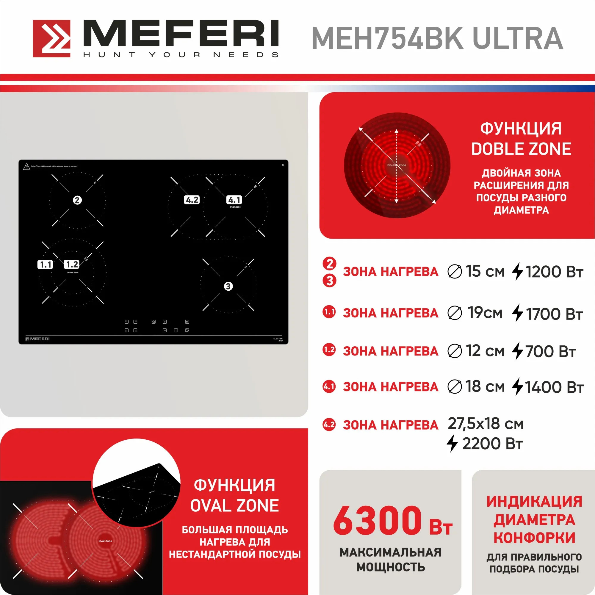 Электрическая варочная панель Meferi MEH754BK ULTRA
