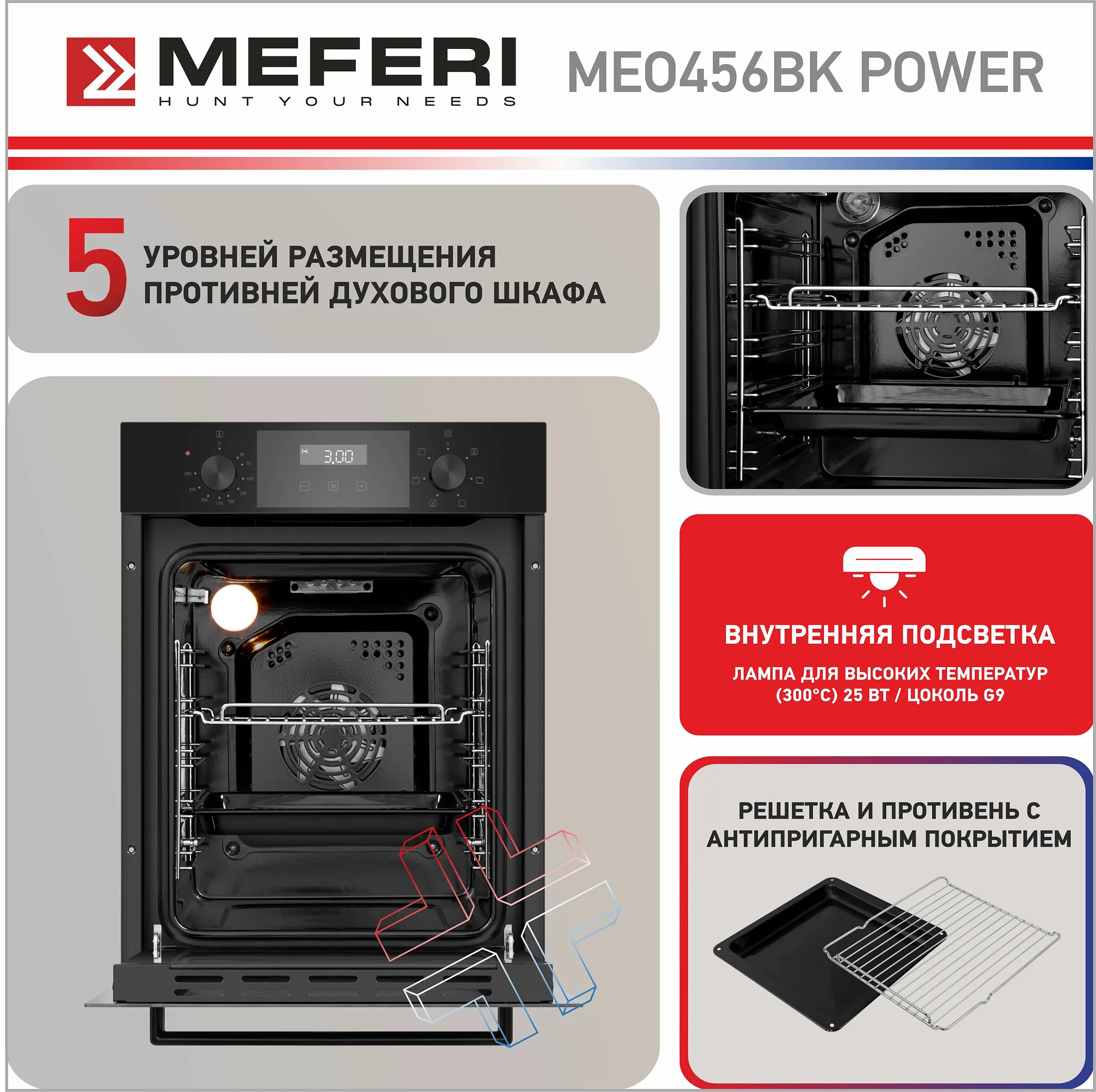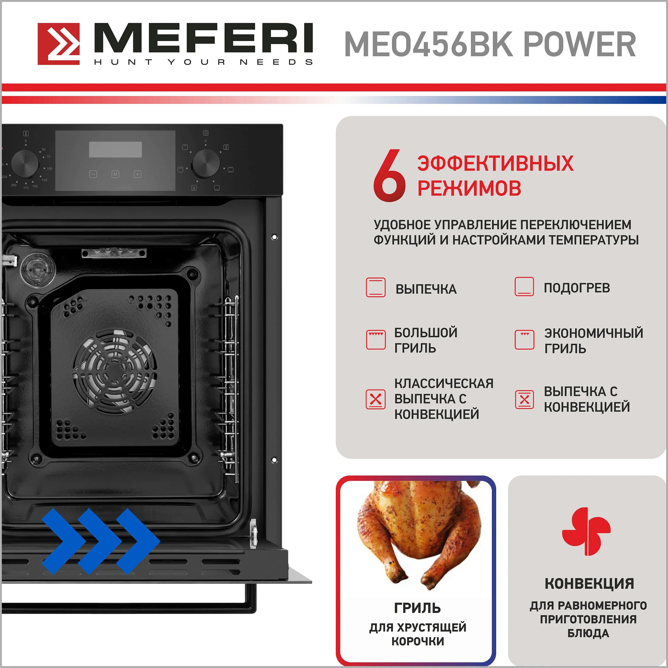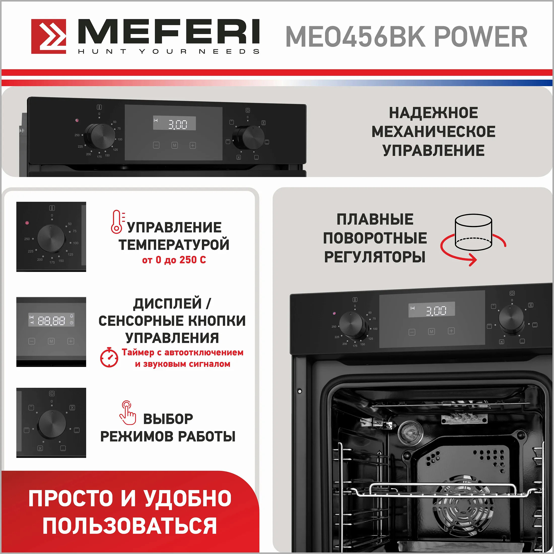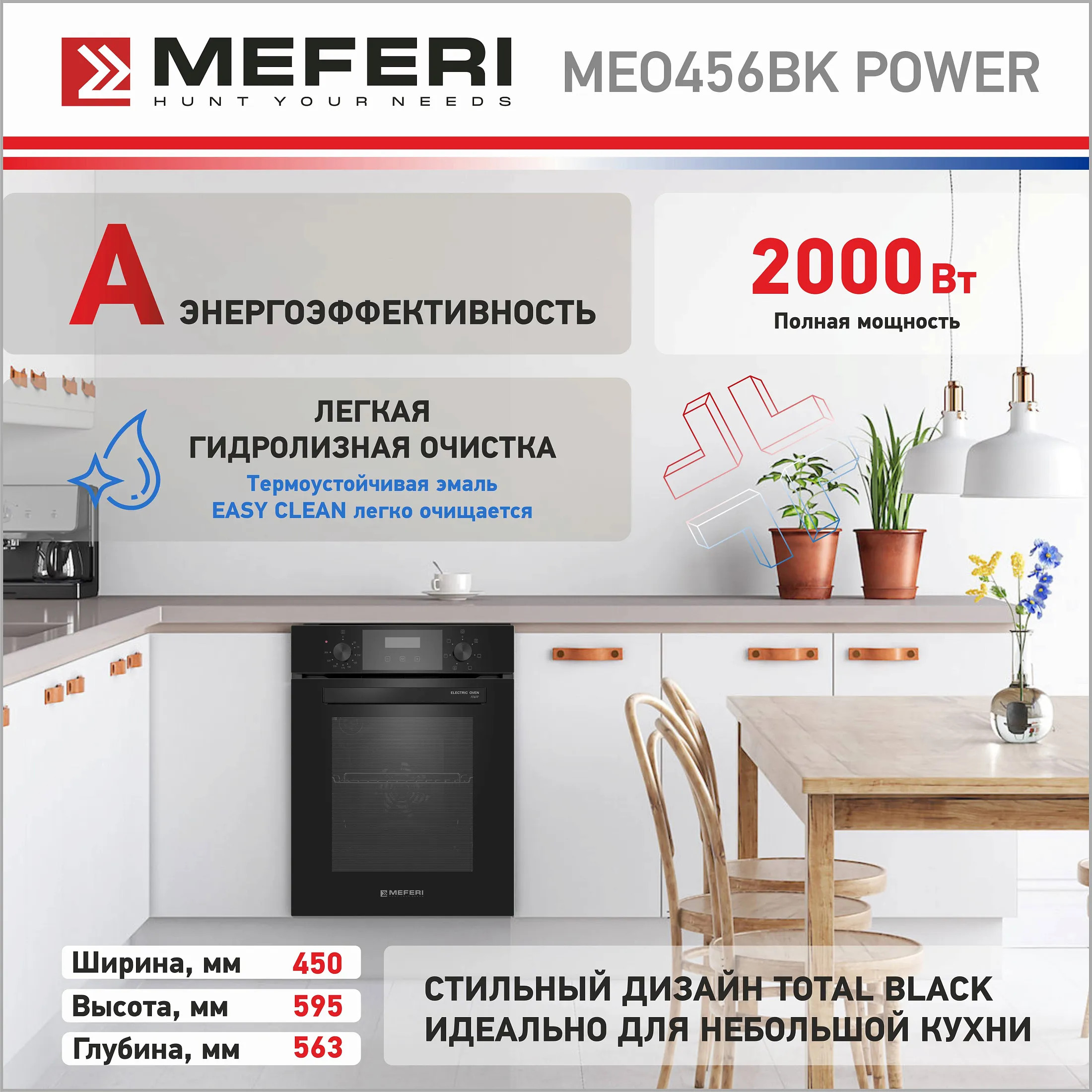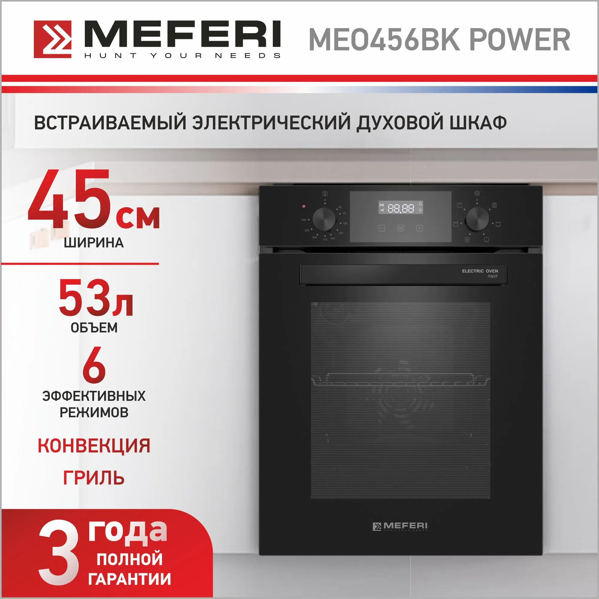 Электрический духовой шкаф 45 см Meferi MEO456BK POWER