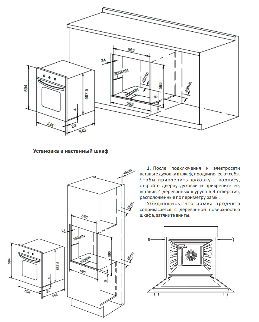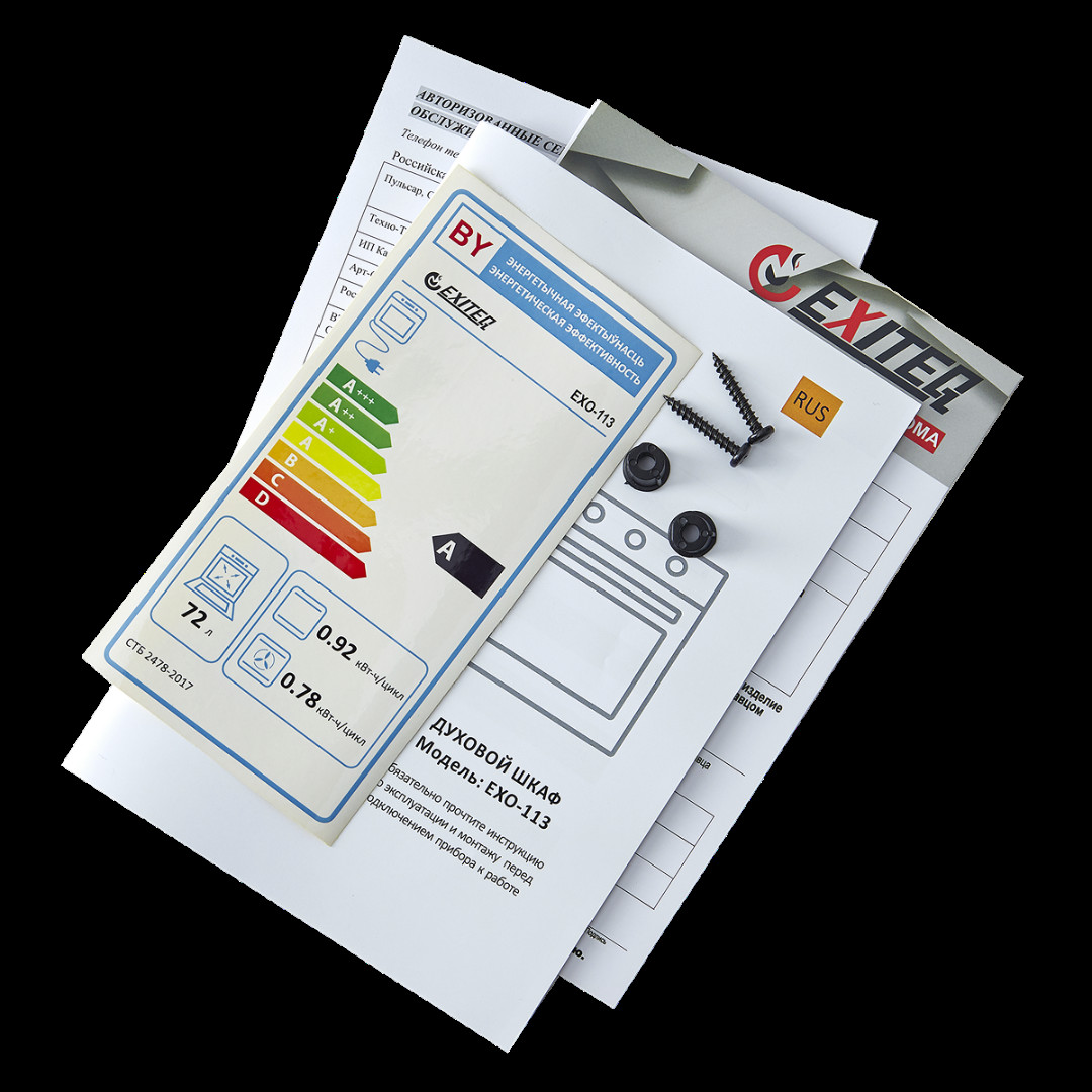 В комплекте: - Глубокий противень, глубиной 40 мм из эмалированной стали - Хромированная решётка - Универсальный противень стандартной глубины 20 мм из эмалированной стали - 2 винта для крепления духового шкафа в кухне - Инструкция по эксплуатации - Схема монтажа (в инструкции)