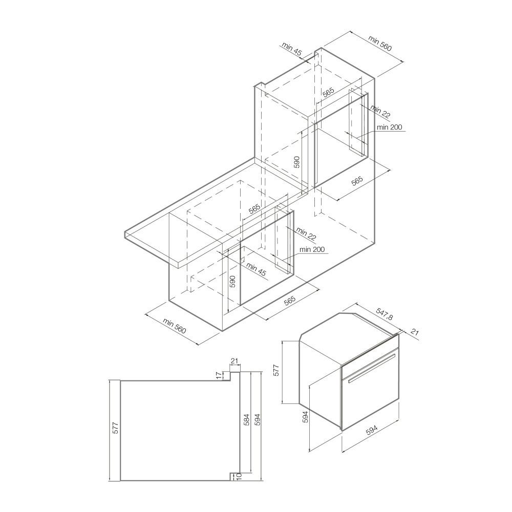 Размеры ниши для встраивания ВхШхГ, мм: 590х565х560