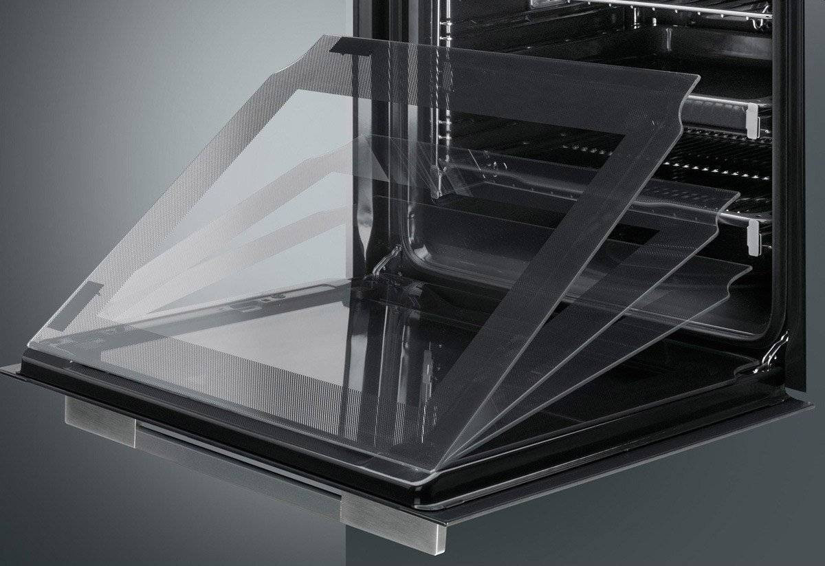 Основные характеристики: Независимый тип установки, класс энергопотребления А, 11 основных режимов, сенсорное управление FULL TOUCH, блокировка управления, быстрый прогрев, съёмная дверца с тремя стеклами, холодный фронт, черная эмаль легкой очистки, объём 76 л. Стекло дверцы с трамп-линиями позволяет создавать визуальный эффект однородности стекла, при выключенном освещение внутреннее содержимое духовой камеры не видно, будь то сковородки, противни т.д, а при включенном освещение весь процесс приготовления виден без помех.