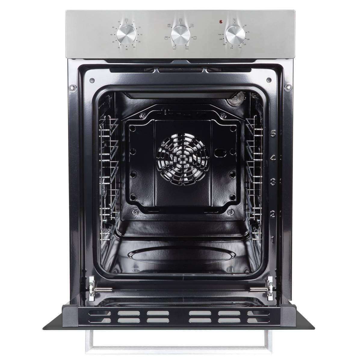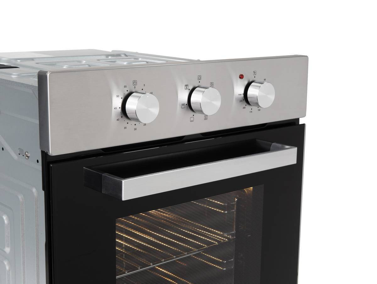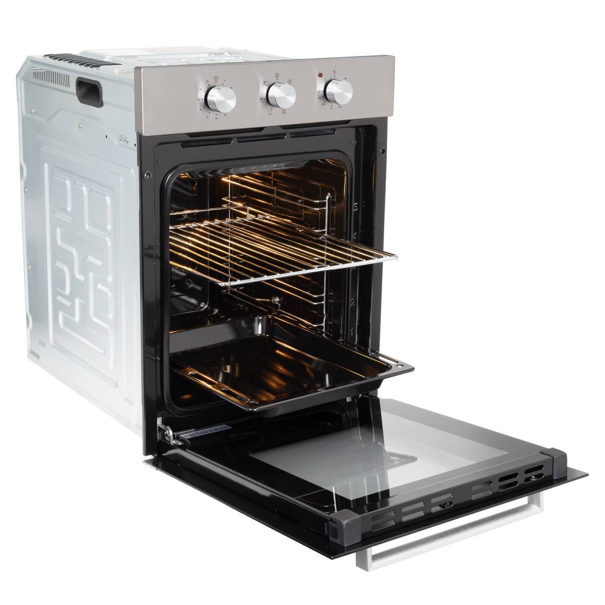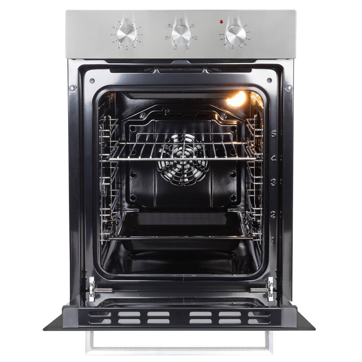 Объем камеры в 51 л с 5 уровнями установки противня на хромированных боковых направляющих позволит приготовить блюда любых размеров: запечь курицу целиком или испечь пирог на большую семью. В комплекте есть противень и съемная решетка.