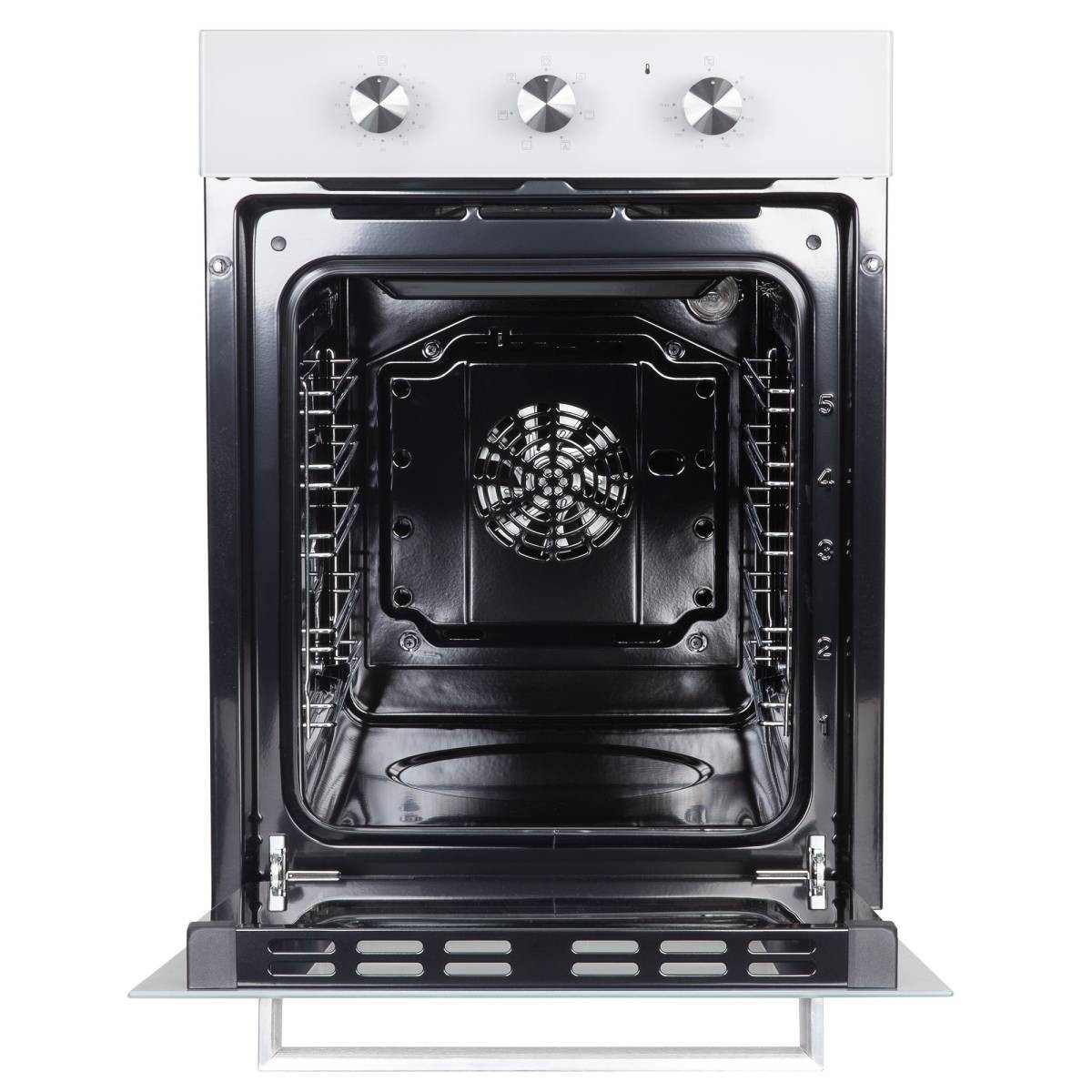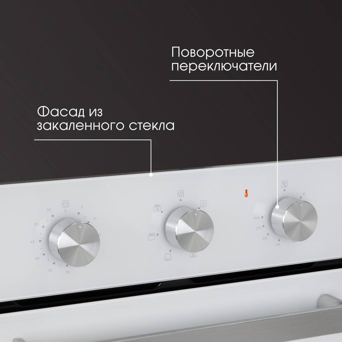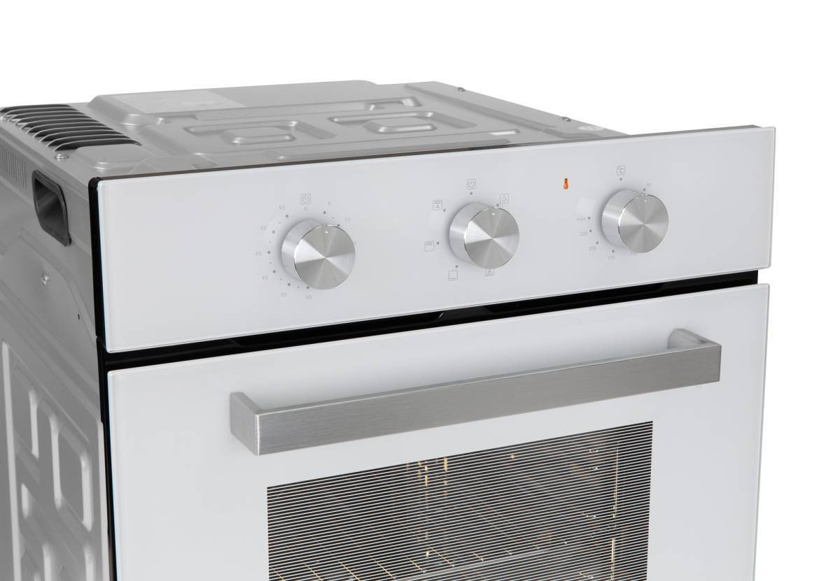 Объем камеры в 51 л с 5 уровнями установки противня на хромированных боковых направляющих позволит приготовить блюда любых размеров: запечь курицу целиком или испечь пирог на большую семью. В комплекте есть противень и съемная решетка.