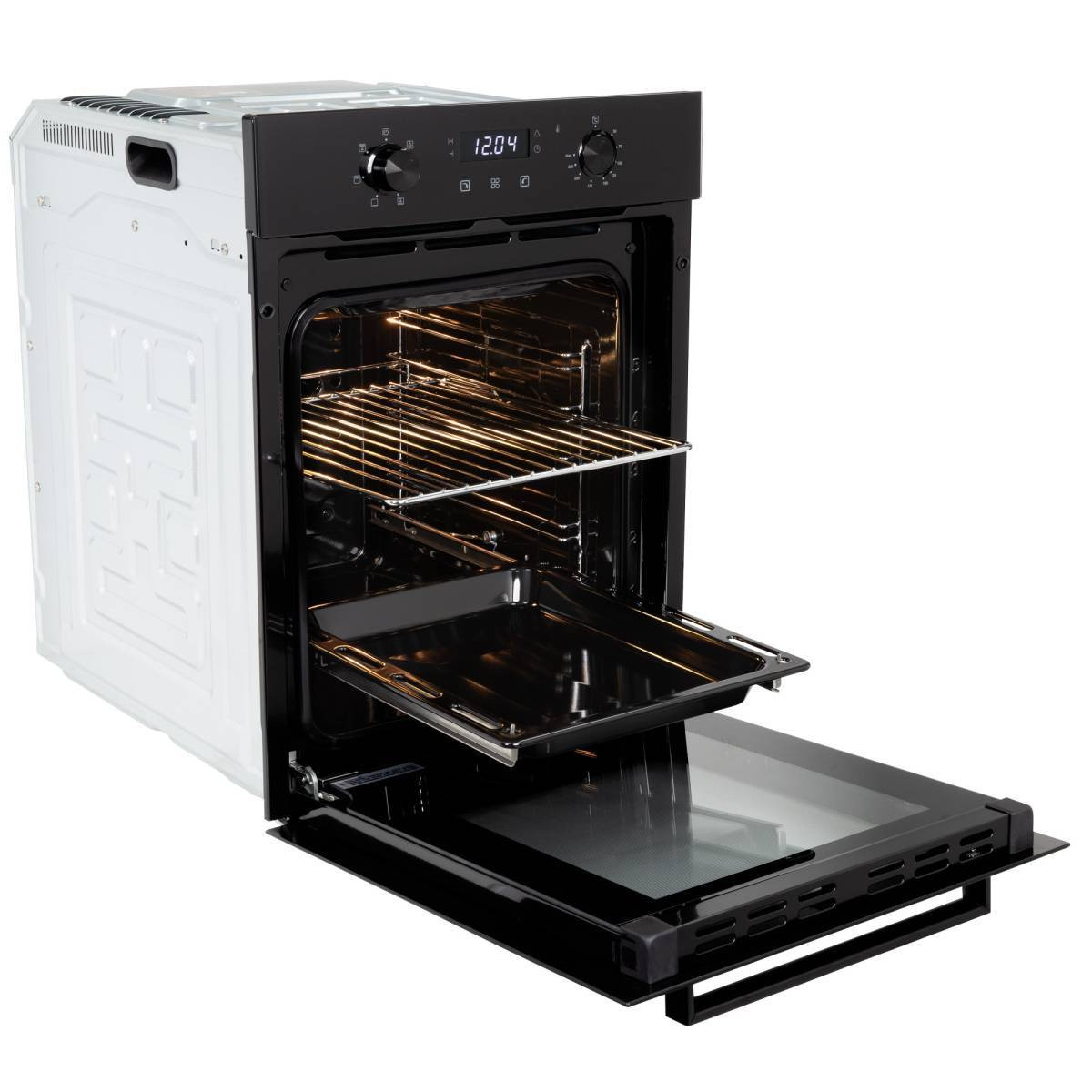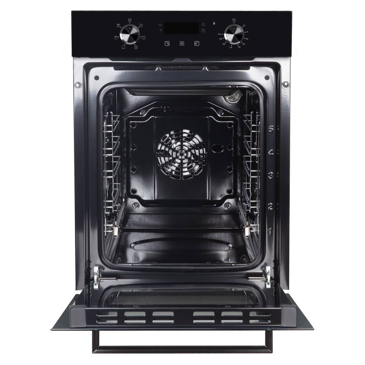 Объем камеры в 51 л с 5 уровнями установки противня на хромированных боковых направляющих позволит приготовить блюда любых размеров: запечь курицу целиком или испечь пирог на большую семью. В комплекте есть противень и съемная решетка.
