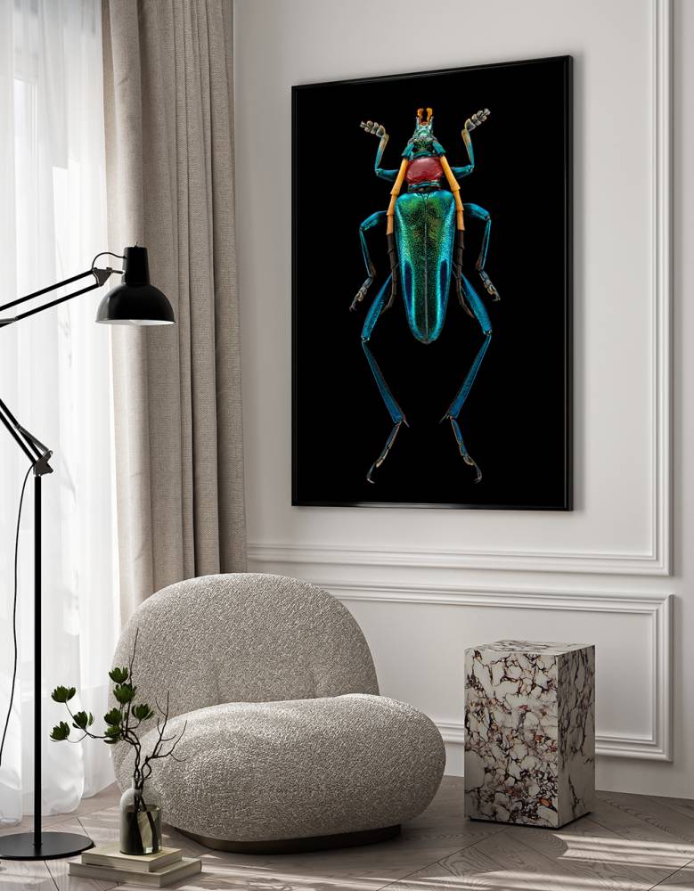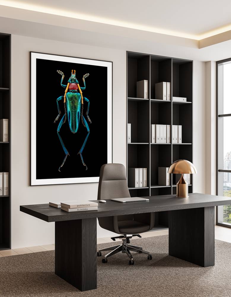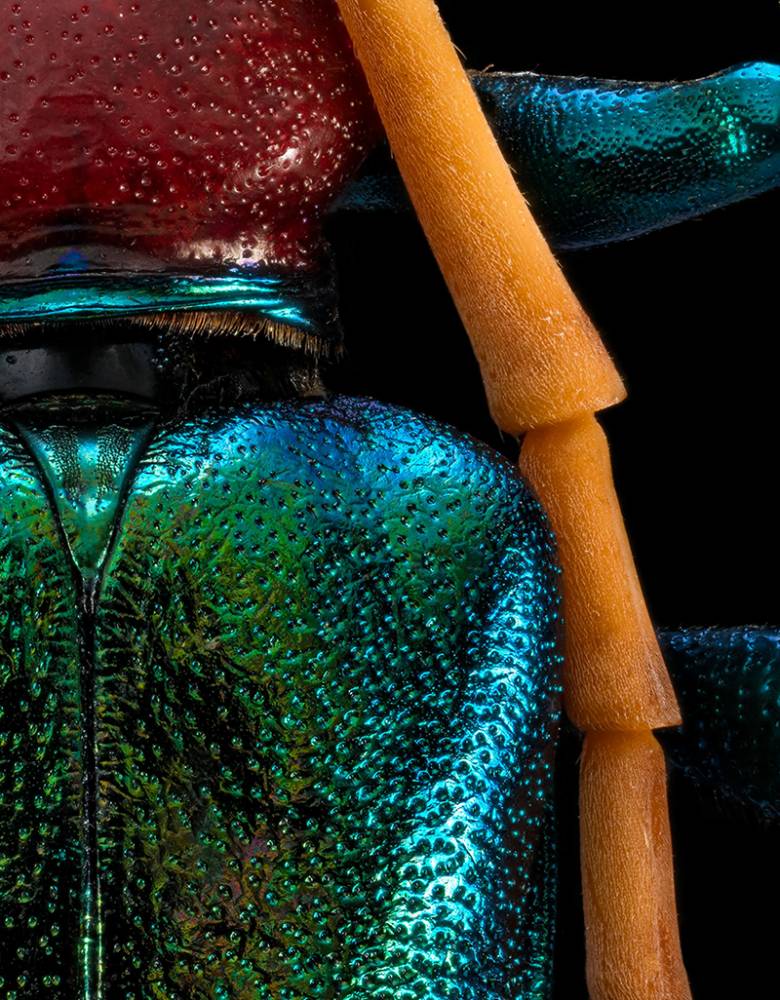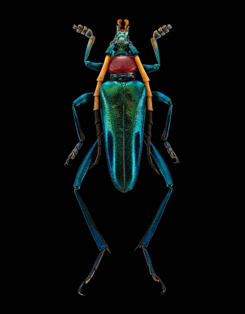 Каждый портрет насекомого создан из тысяч отдельных фотографий с использованием специальной системы камер и объективов. Фотограф использует трудоемкий способ фото-стекинга, при котором изображение сшивается из 1500-2000 кадров, а процесс создания одного «портрета» от начала до финального файла высокого разрешения может занимать до 2-х недель. Благодаря такой технологии удается получать супер-детализированное изображение, которое максимально эффектно выглядит в крупном интерьерном формате.