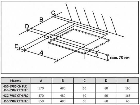 Габариты ниши для встраивания (Ш х Г), см: 57 х 48