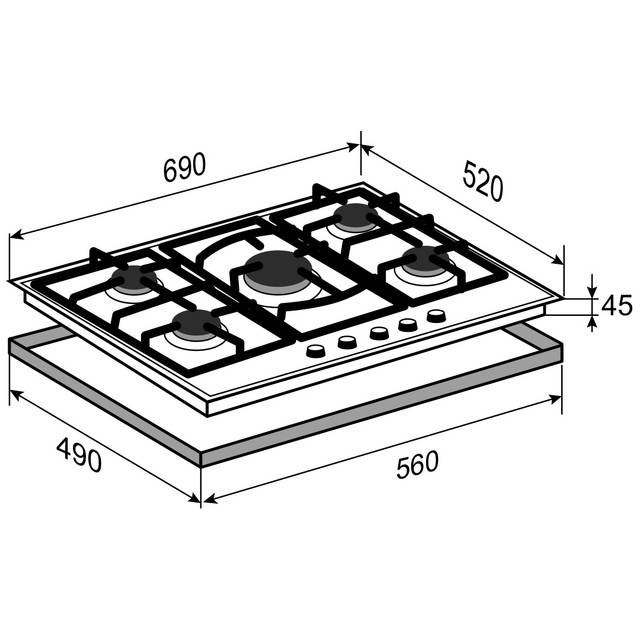 Мощность горелок, Вт: 3.500; 2.900; 1.700; 1.700; 900