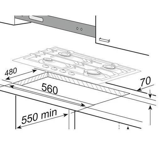 Размер ниши для встраивания (ВхШхГ), (мм) 35х560х480
