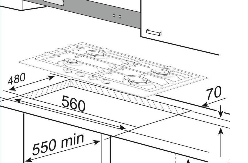 Размер ниши для встраивания (ВхШхГ) 35х560х490 мм