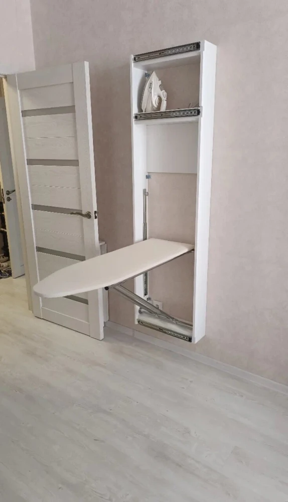 Одно из главных преимуществ гладильной доски это, то, что мы доставляем ее в собранном виде, сборка не требуется. Вам необходимо только зафиксировать интерьерную гладильную доску к стене и можно пользоваться.