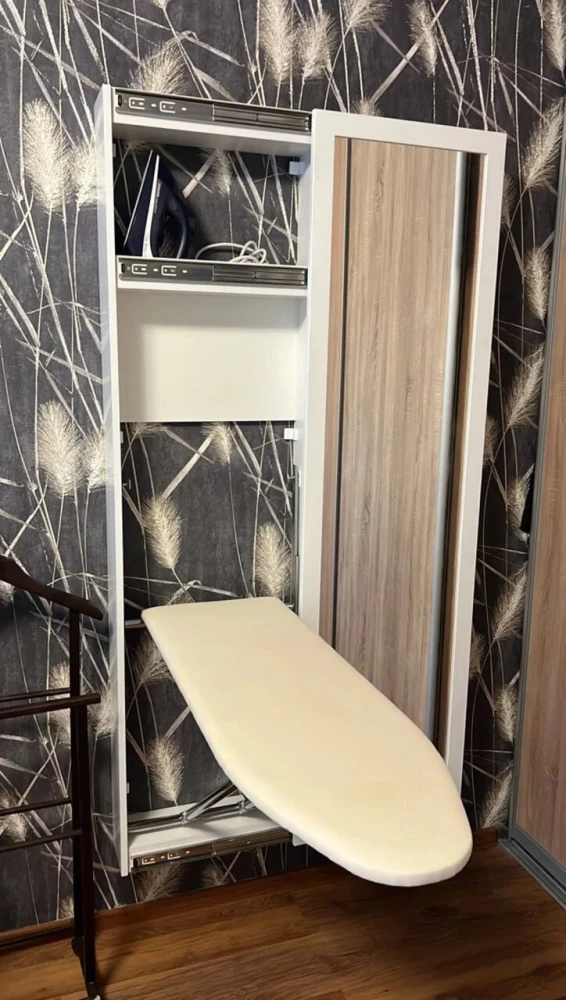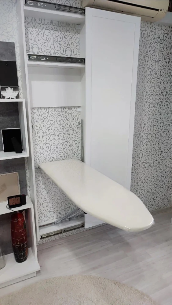 В каждой квартире есть гладильная доска, но не в каждой квартире есть место для ее хранения. Устали постоянно доставать, разбирать, собирать, убирать обратно гладильную доску? Не хватает место для ее хранения? Не можете вписать ее в интерьер? Компания мебельная индустрия предлагает Вам решение. Настенная гладильная доска за зеркалом – это практичное решение, которое понравится любой хозяйке. В закрытом состоянии она выглядит как обычное зеркало в полный рост, а в открытом это полноценная гладильная доска.