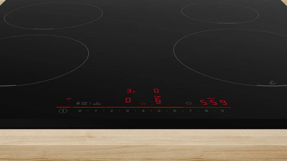 Варочная панель оснащена системой управления DirectSelect, которая обеспечивает быстрый и точный выбор требуемой степени мощности. Всего доступно 17 ступеней мощности, что позволяет точно настроить температуру приготовления. Функции PanBoost, ReStart и PowerBoost позволяют быстро нагревать посуду, продолжать приготовление после паузы и увеличивать мощность нагрева для более быстрого приготовления. Благодаря функции PowerManagement, панель оптимизирует потребление энергии, что позволяет экономить на электроэнергии. Кроме того, модель оснащена защитным отключением, блокировкой от детей и функцией Cleaning-пауза, которая обеспечивает безопасность и удобство использования. Индикатор остаточного тепла позволяет контролировать состояние панели после приготовления пищи. Функция Home Connect позволяет управлять панелью с помощью смартфона или планшета. Это удобное и современное решение для тех, кто ценит комфорт и технологичность. Гарантийный срок на панель составляет 12 месяцев, что подтверждает высокое качество и надежность модели.