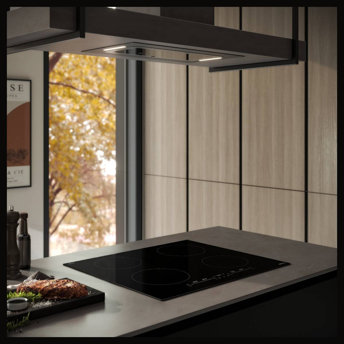 Управлять вытяжкой можно как с ее контрольной панели, так и с варочной поверхности, без необходимости повторного соединения устройств.
