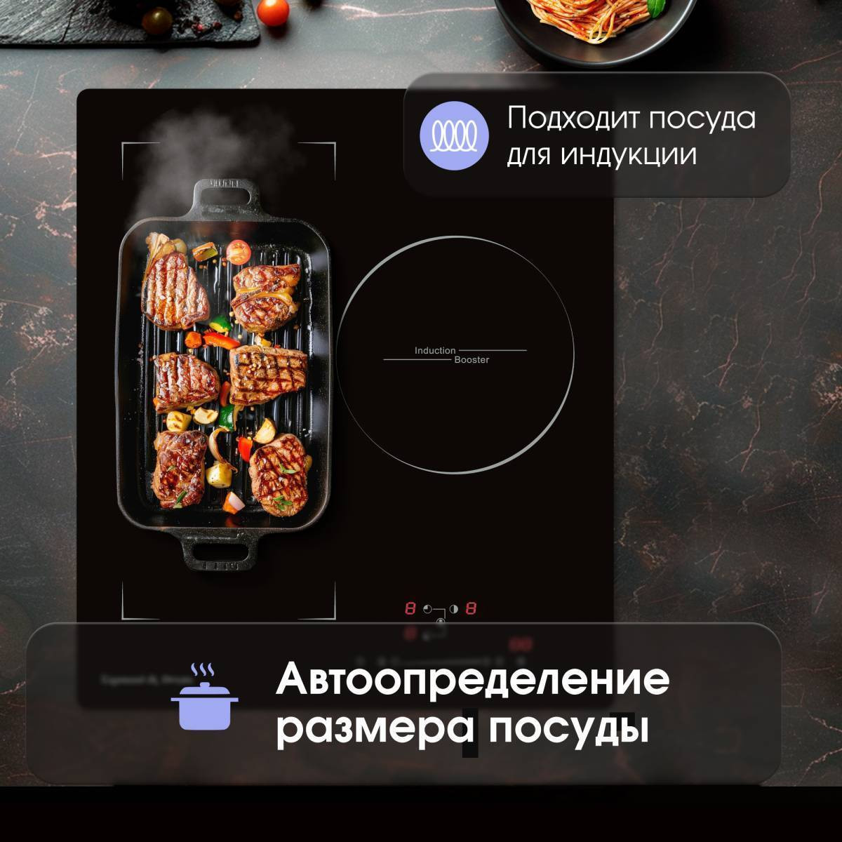 Автоматическое определение размера посуды и адаптация мощности