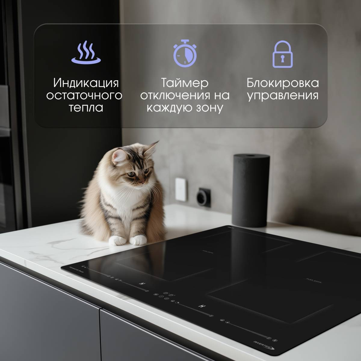 Дополнительным бонусом является защита от перелива и перегрева – варочная поверхность в этих случаях автоматически выключается, защищая столешницу и кухонный гарнитур.