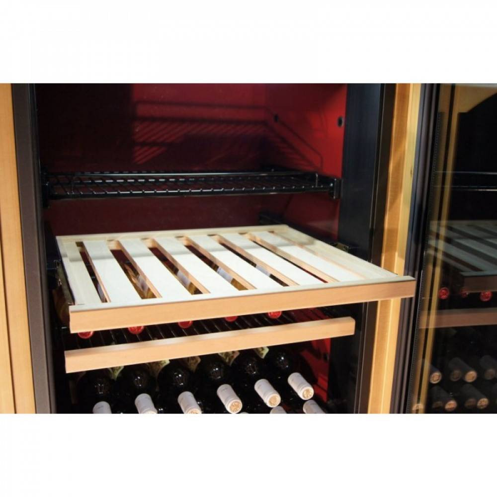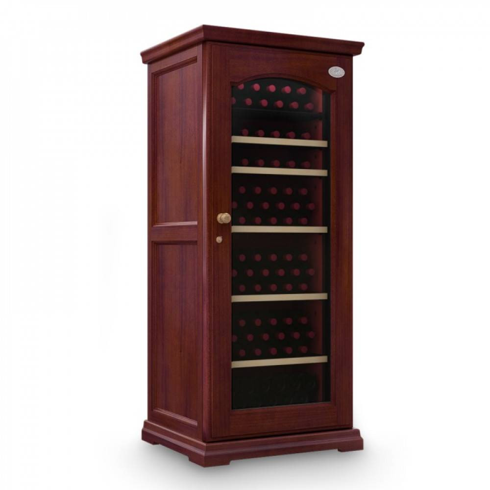 Корпус холодильника CEX 401 металлический, внешняя отделка винного шкафа выполнена из древесины Risto Line в четырех цветовых решениях. Дверца выполнена из двойного тонированного стеклопакета с защитой от уф лучей, имеет встроенный замок и удобную ручку в классическом стиле.