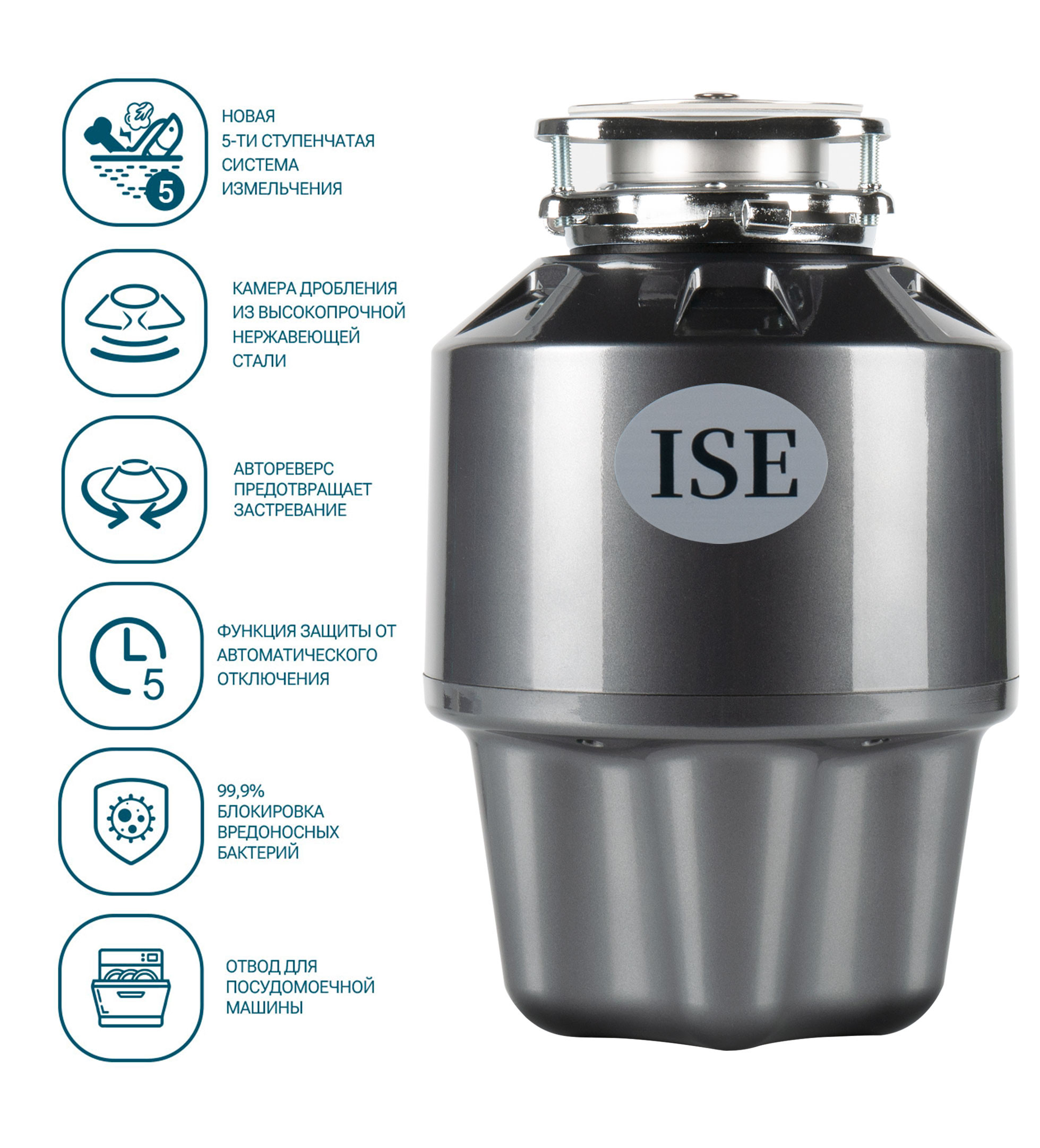 ISE 250 Turbo с элегантным, компактным корпусом — эргономичное решение для пространства под кухонной мойкой. Эффективная утилизация отходов, экологичность. Подходит для всех типов моек (99%).