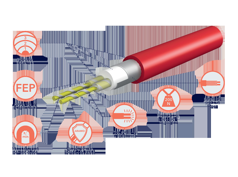 Минимальный радиус сгиба. Конструкция позволяет перегибать кабель без риска обрыва или слома жил. Это достигается за счёт уникальной конструкции тонких витых греющих жил, длина которых превосходит длину кабеля на 6%. При любых деформациях или растяжениях основная нагрузка приходится на арамидную жилу, а греющие проводники легко адаптируются к изменению радиуса сгиба.