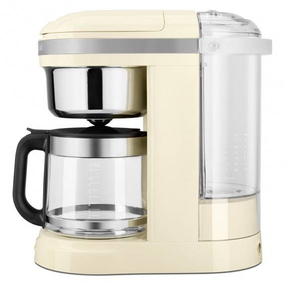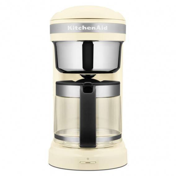 Кофеварка на 12 чашек KitchenAid позволит вам наслаждаться вкусным кофе каждый день. У этой кофеварки есть все, чтобы сделать ваш кофе поистине идеальным с точки зрения вкуса и аромата. Она делает искусство приготовления кофе простым и непринужденным. Уникальная спиральная распылительная головка с 29 отверстиями равномерно насыщает молотый кофе для оптимального извлечения вкуса, что позволяет получить невероятно ароматный и насыщенный кофе. Регулятор крепости кофе позволяет выбрать нужную крепость напитка. Исключите фактор неопределенности из процесса приготовления кофе благодаря шкале дозировки на многоразовом фильтре золотистого цвета и таблице дозировки на емкости для воды, чтобы всегда получать отменный вкус кофе. Уникальная форма носика стеклянного графина способствует удобному наливанию кофе без брызг, позволяя без труда наливать в чашки любого размера и формы. Благодаря этой капельной кофеварке вы можете готовить кофе в любое удобное время: две программируемых функции для автоматического приготовления позволят вам установить нужное время приготовления кофе. Функция «Приостановить и слить» позволяет налить себе кофе до завершения цикла приготовления, а программируемая нагревательная панель поддерживает заданную температуру кофе в течение 40 минут. Идеальное решение, если вы куда-то торопитесь с утра. Капельная кофеварка KitchenAid обладает современным элегантным дизайном и способна украсить любую кухню. Почему бы не добавить сюда тостер Design Collection, чтобы вы смогли насладиться новыми функциями, которые придутся вам по вкусу во время завтрака?