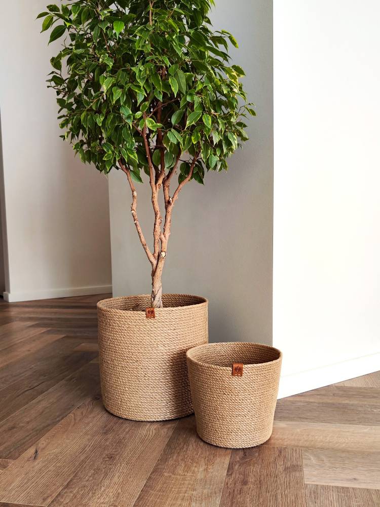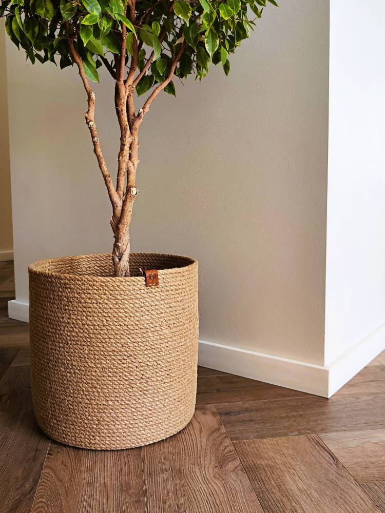 Плетеное кашпо напольное для комнатных цветов в горшках и композиций с сухоцветами и живыми цветами — тренд и идеальное решение для создания уютной домашней атмосферы. Изделия из джута подойдут для украшения комнаты в любом стиле: разбавит натуральностью лофт, минимализм, обновит бохо, классику.