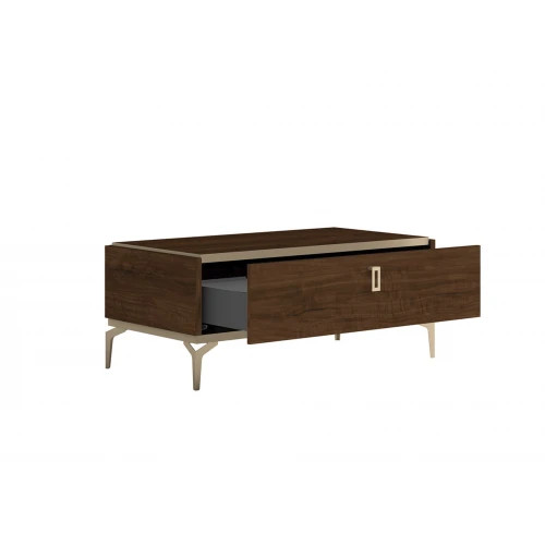 Кофейный столик из коллекции EVA на изящных ножках. Столик имеет выдвижной ящик для хранения.