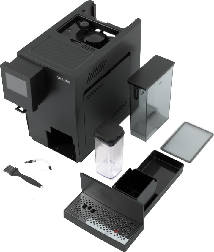 Модель Graude KV 30.2 способна приготовить не только обычный и двойной кофе, но и эспрессо, американо, капучино, кофе латте. Также есть возможность приготовления молочной пены и подачи горячей воды. Съемный резервуар для воды объемом 1.1 литра и емкость контейнера для зерен 100 гр. обеспечивают удобство использования и обслуживания кофемашины.