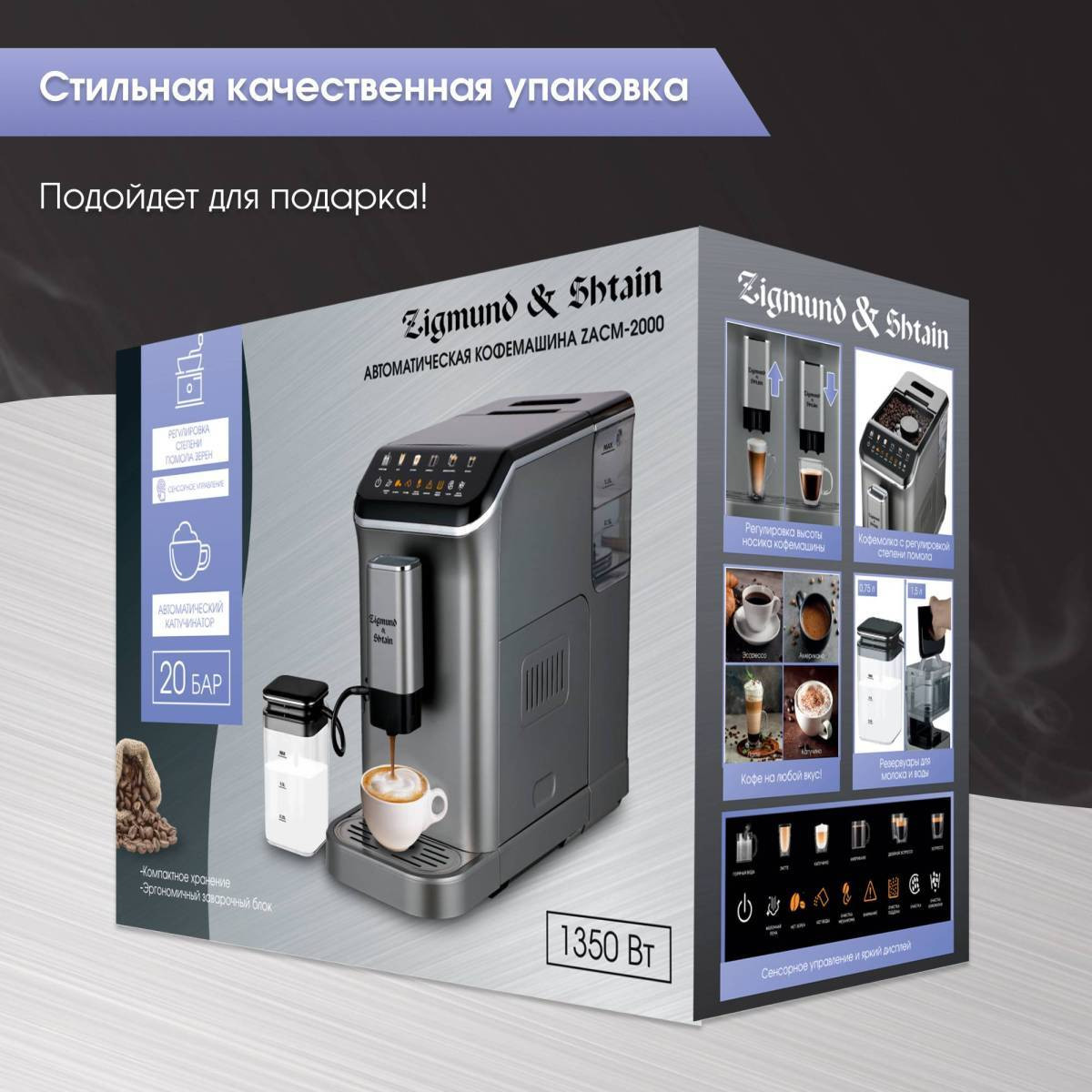 ZACM-2000 имеет встроенную кофемолку с коническими жерновами и 15 степенями помола. Кофемолка измельчит необходимое количество кофейных зёрен.