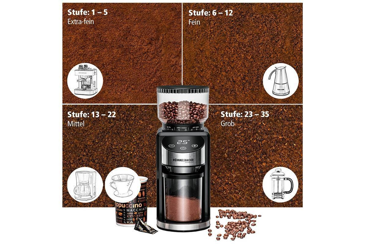 40 степеней помола для самых разных кофейных напитков (эспрессо, фильтр-кофе, френч-пресс и т.д.)