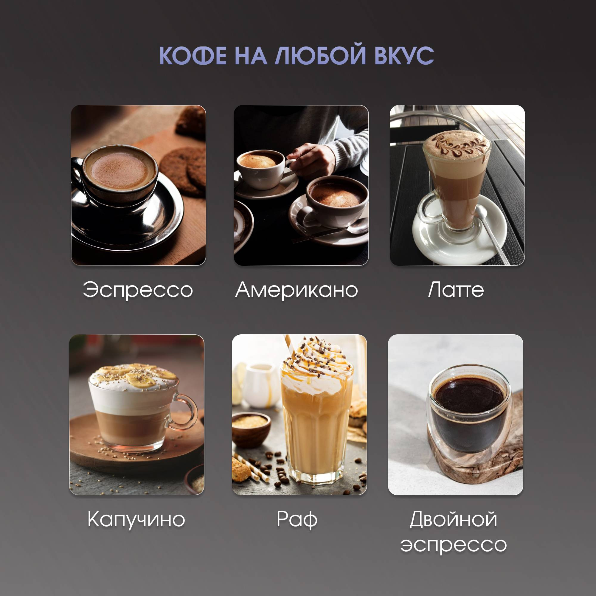 Программы: эспрессо, капучино, латте