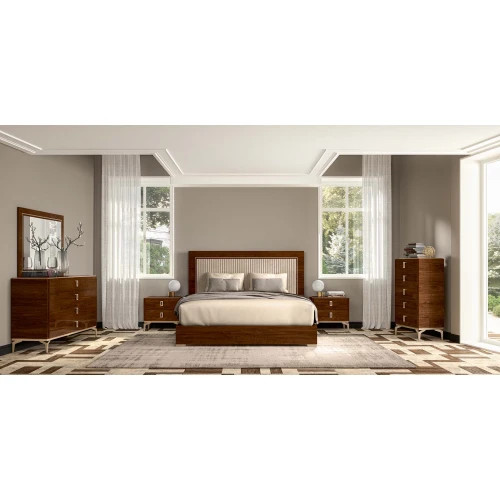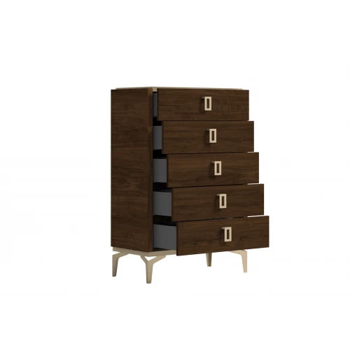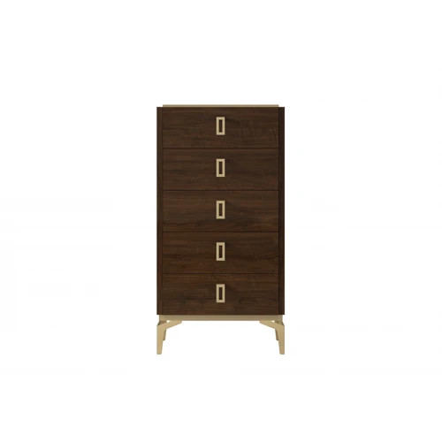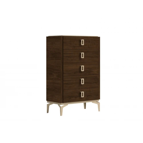 Комод высокий из коллекции Eva с пятью ящиками для хранения. Комод имеет металличские ручки, а ящики оснащены металлическими направляющими с доводчиками.