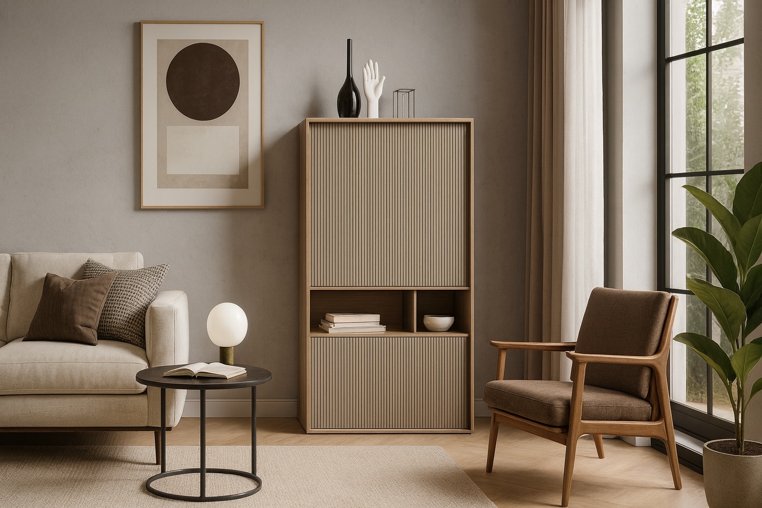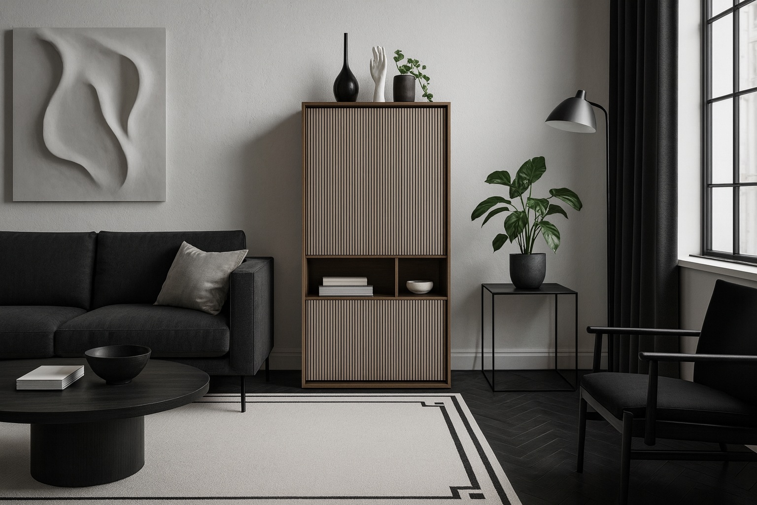 Минималистичный, но выразительный комод iscomp711 завораживает ритмичностью вертикального рельефа. Он словно продолжает архитектуру пространства, придавая интерьеру глубину и утончённость.