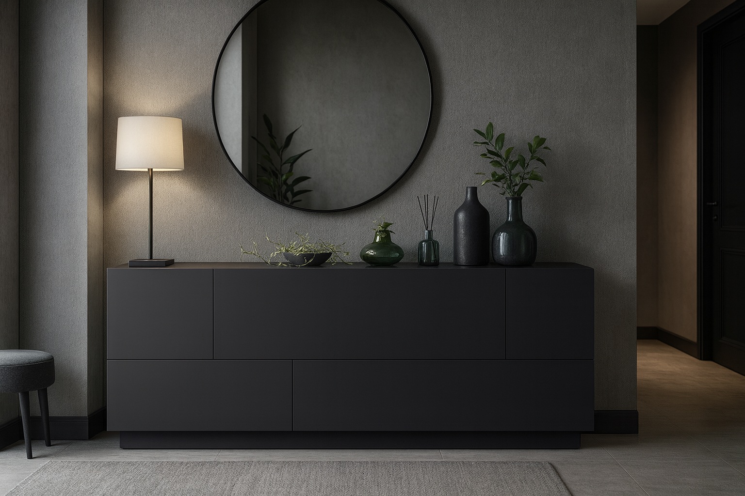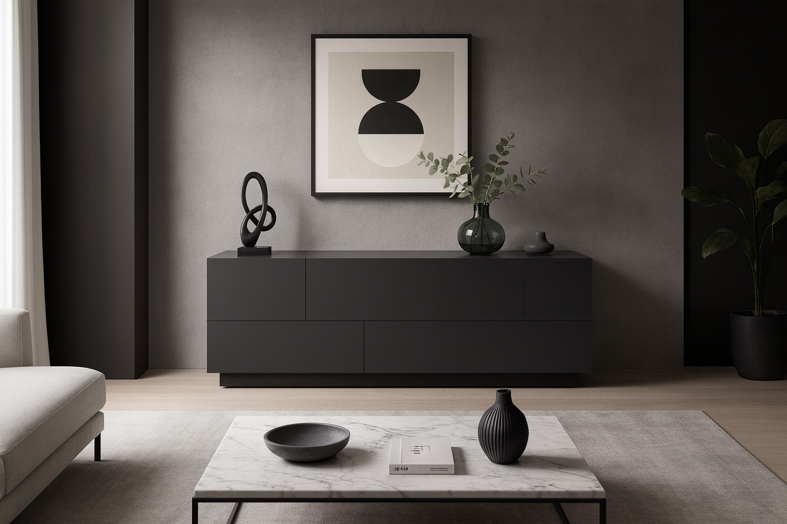 Комод iscomp735 — это манифест утончённой простоты. Чистые линии, глубокий матовый цвет и абсолютная симметрия превращают его в произведение интерьерного искусства. Он не требует лишних акцентов — сам становится фоном для драматичной выразительности пространства.