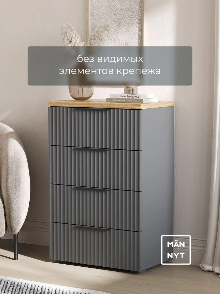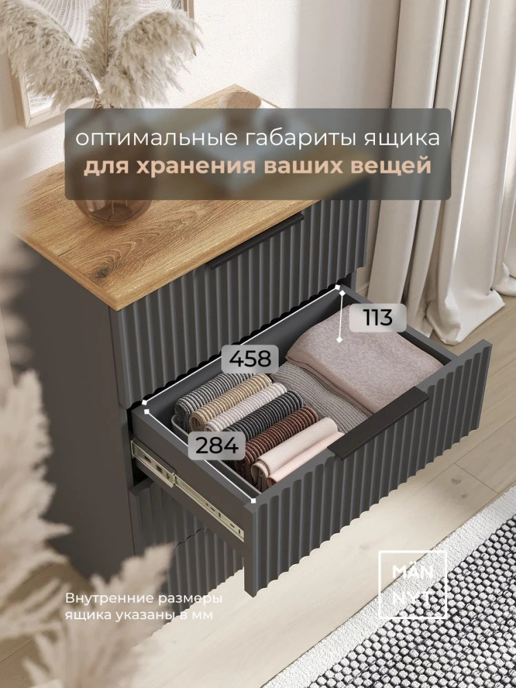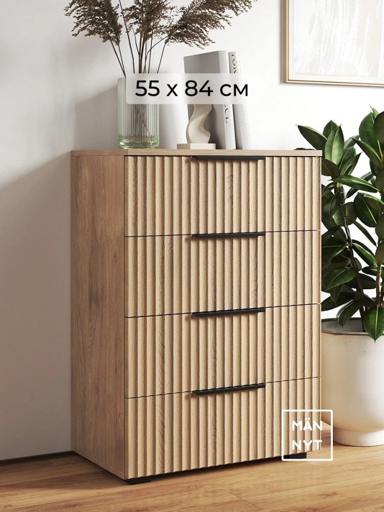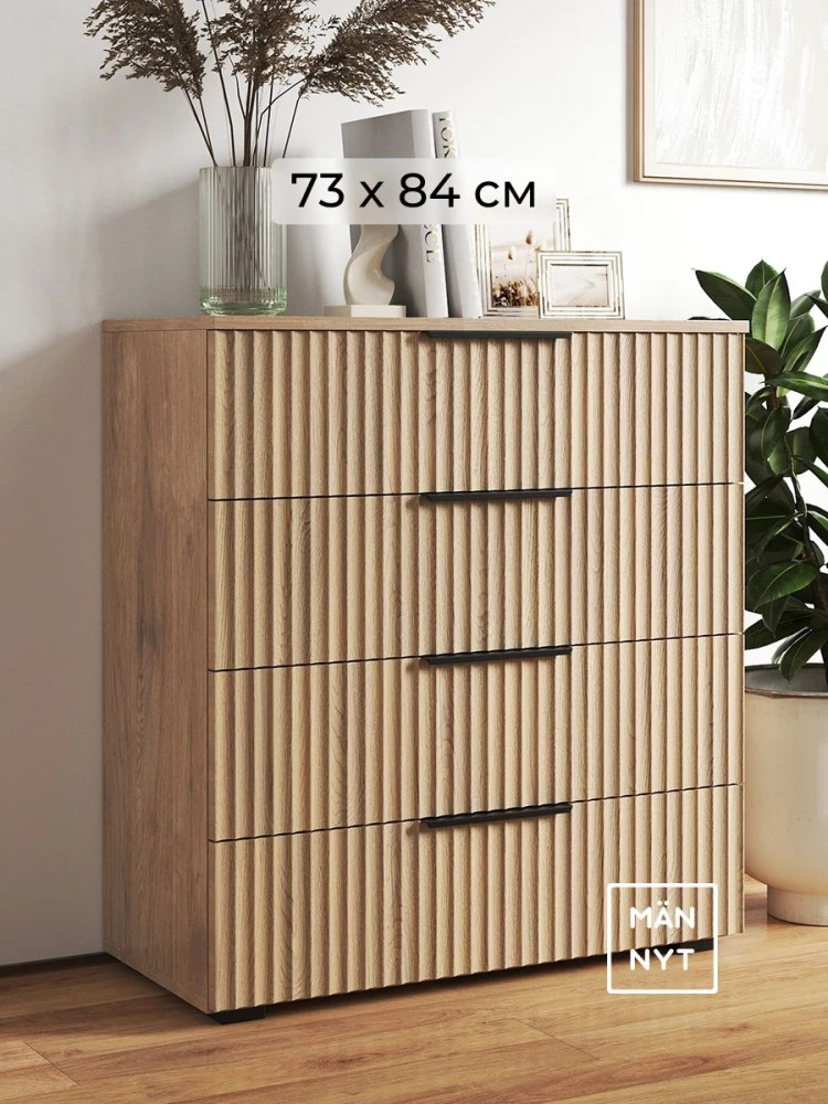 Благодаря своим компактным размерам, комод не займет много места, но в то же время предоставит достаточно пространства для хранения различных вещей. Четыре просторных ящика позволят организовать порядок в вашем доме – вы сможете легко хранить одежду, аксессуары, постельное белье, документы и другие предметы. Наличие такого элемента мебели, как комод в спальню, поможет поддерживать порядок и упростит доступ к необходимым вещам.